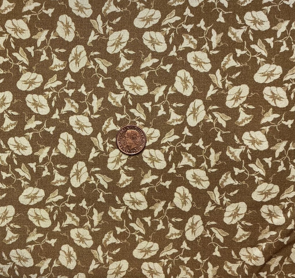 Brunbeig tyg med blommor och blad