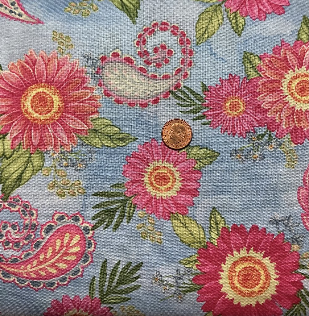 Ljusblått tyg med blommor